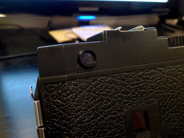 簡潔的機背 只有左上角的觀景窗跟中間的12片或16張選擇開關